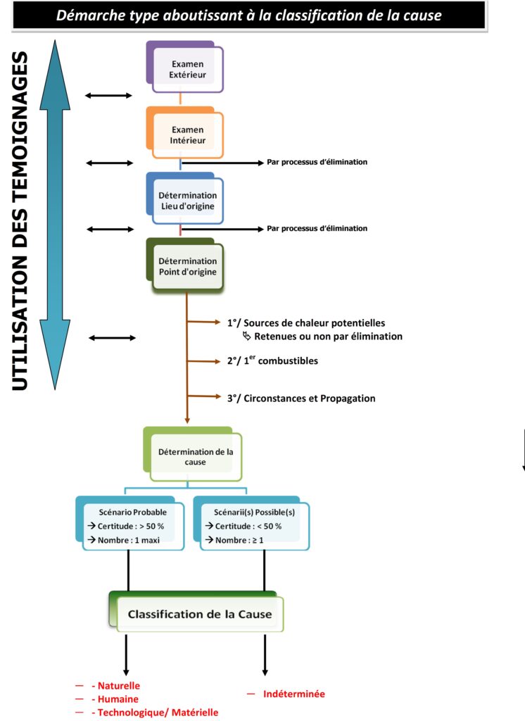 La démarche-type de l’expertise d’incendie aboutissant à la classification de la cause est résumée dans le tableau suivant :